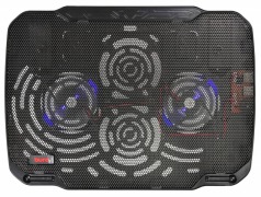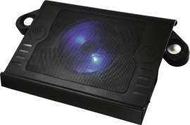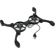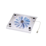 Подставка с вентилятором, материал: полипропилен, диаметр венттилятора 22 см, минимальная скорость вращения вентилятора: 600 об/мин, питание от USB. Размеры: 29 х 4 х 30 см, вес: 550 г.