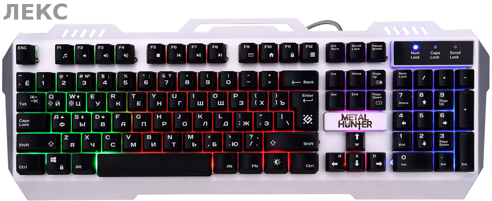 Проводная игровая клавиатура Defender Metal Hunter GK-140L RU,RGB подсветка,19 Anti-Ghost