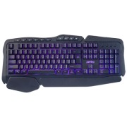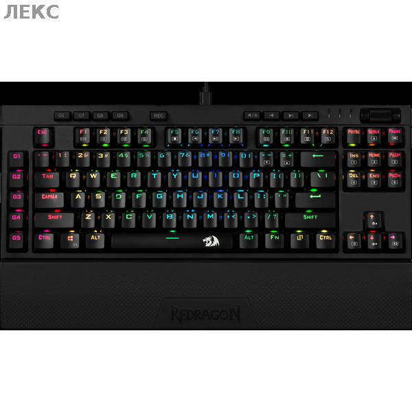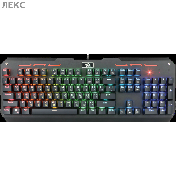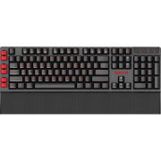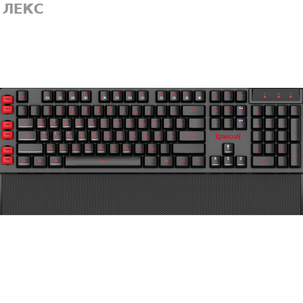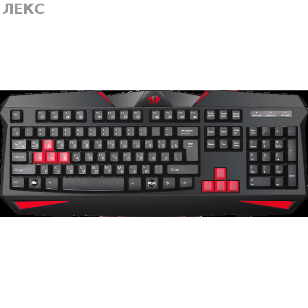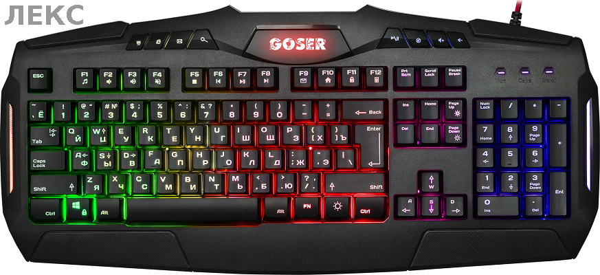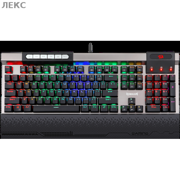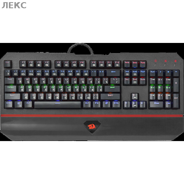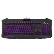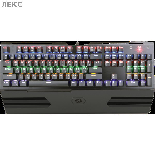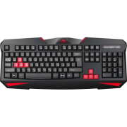 Мультимедийная клавиатура с классической полноразмерной раскладкой. Внутренняя LED подсветка трех цветов (красный, синий, фиолетовый). Конструкция с поддержкой запястий для более комфортной работы