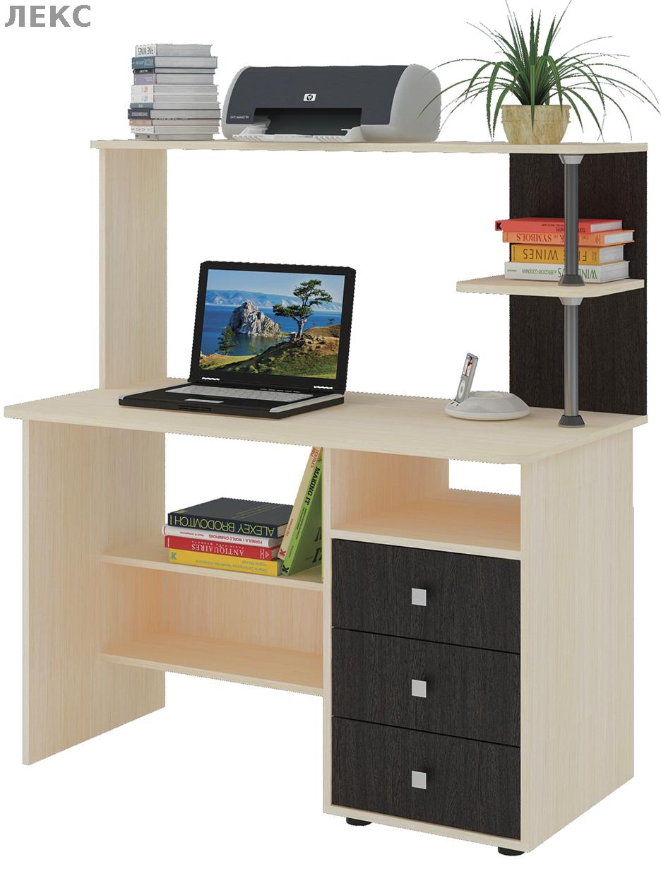 Многофункциональный компьютерный стол Крокус включает в себя все, что нужно для эффективной работы или учебы. Имеются отделение для системного блока, выдвижные ящики, надстройка для оргтехники, полка для монитора . Изготовлен в комбинации цветов Дуб Венге и Дуб Белфорт из ЛДСП.