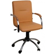 Кресло SAMBA GTP относится к коллекции "Кресла для персонала". При этом визуально оно выглядит дорого и солидно и весьма презентабельно смотрится, например, в кабинете врача. Обивка из натуральной или искусственной кожи, деревянные накладки подлокотников, хромированная колесная база – вот те преимущества, которые выделяют кресло "Самба" из общей массы офисных кресел. Данная модель оснащена механизмом КАЧАНИЯ, который позволяет осуществлять свободное качание в кресле, фиксировать наклон сидения и спинки в одном положении, а также подстраивать силу отклонения сидения и спинки под вес сидящего.В стандартном оснащении кресло комплектуется колесами для ковровых покрытий.