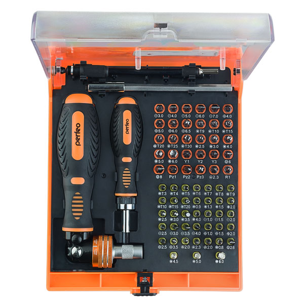 Универсальный набор Frank 2в1 с двумя отвертками с «трещотками» и 63 разными насадками из стали CR-V решит любую задачу. Отвертка с поворотной головкой на +90/-90 градусов и три удлинителя для бит (гибкий и два жестких) помогут работать с крепежом в узких, отдаленных и других труднодоступных местах.